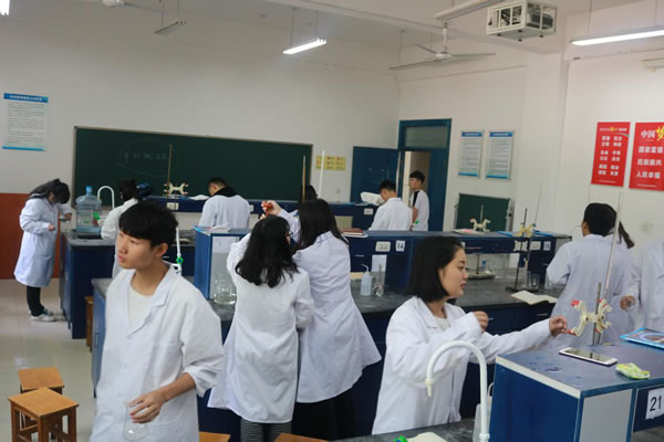 为进一步提升订单班学生的技能,检验其对无机分析与化学专业学习深度,2018年5月12日,由系部联合公司组织了玻璃仪器操作比赛。豪门国际·新希望班21名同学分为10组参加。